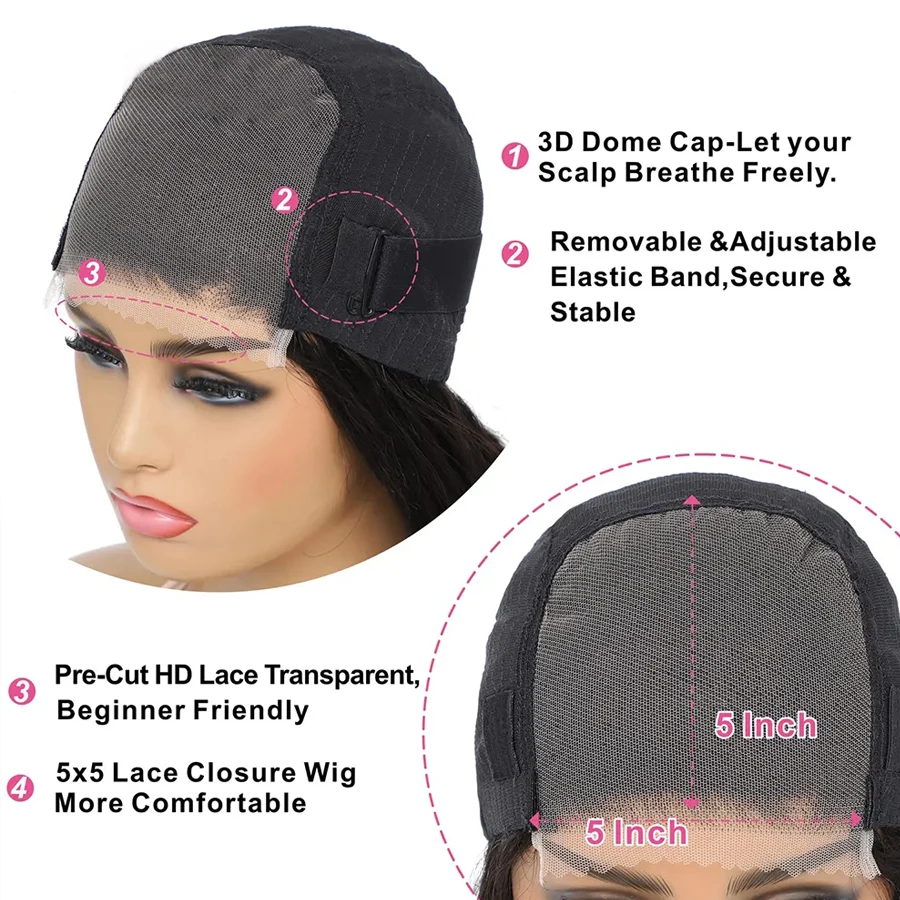 Luxefame Glueless Straight 5x5 HD Lace Closure Wig 180% Density Human Hair 5x5 Pre Cut Lace Wigs for Women