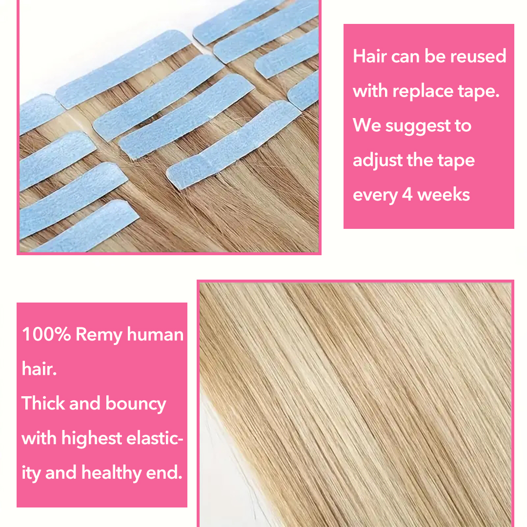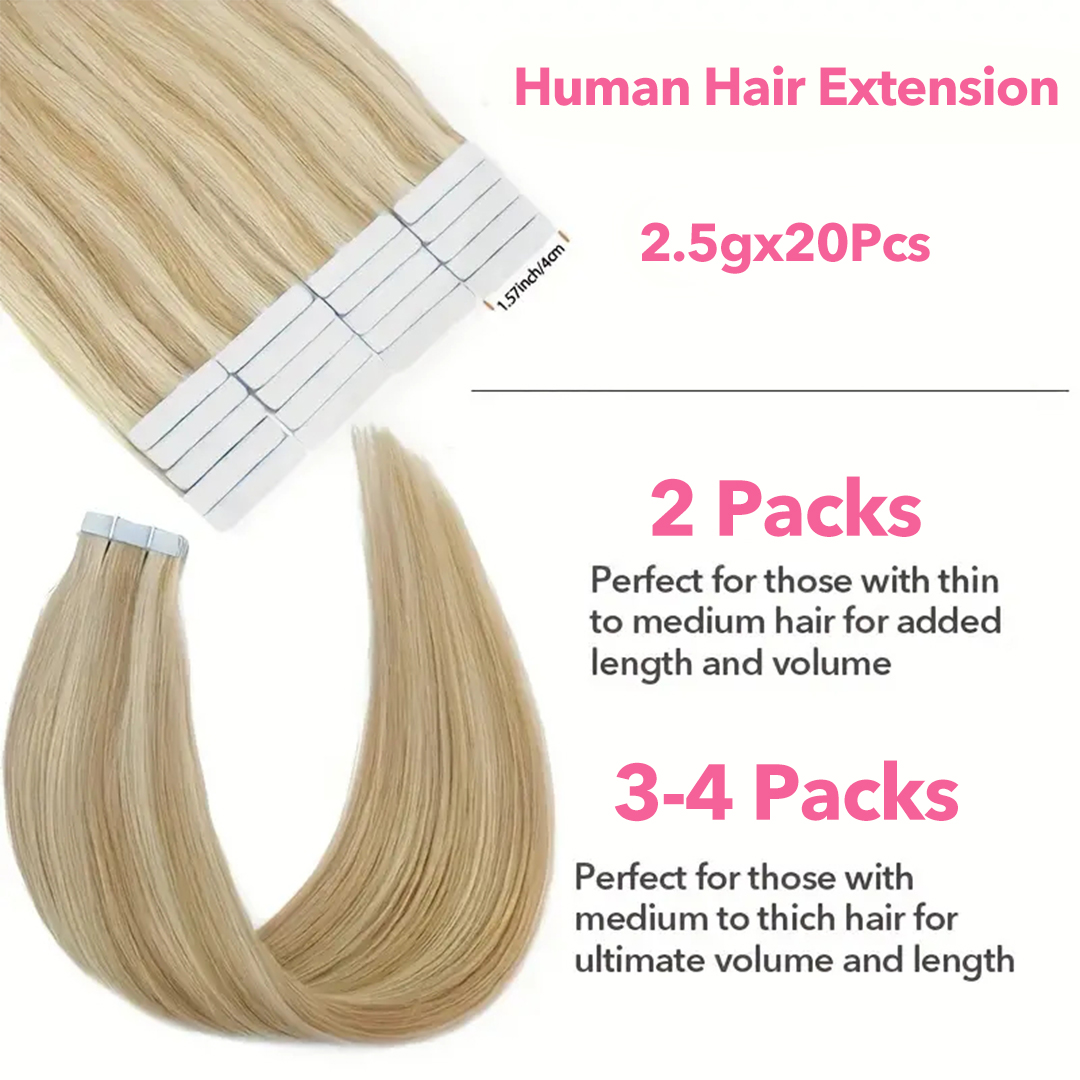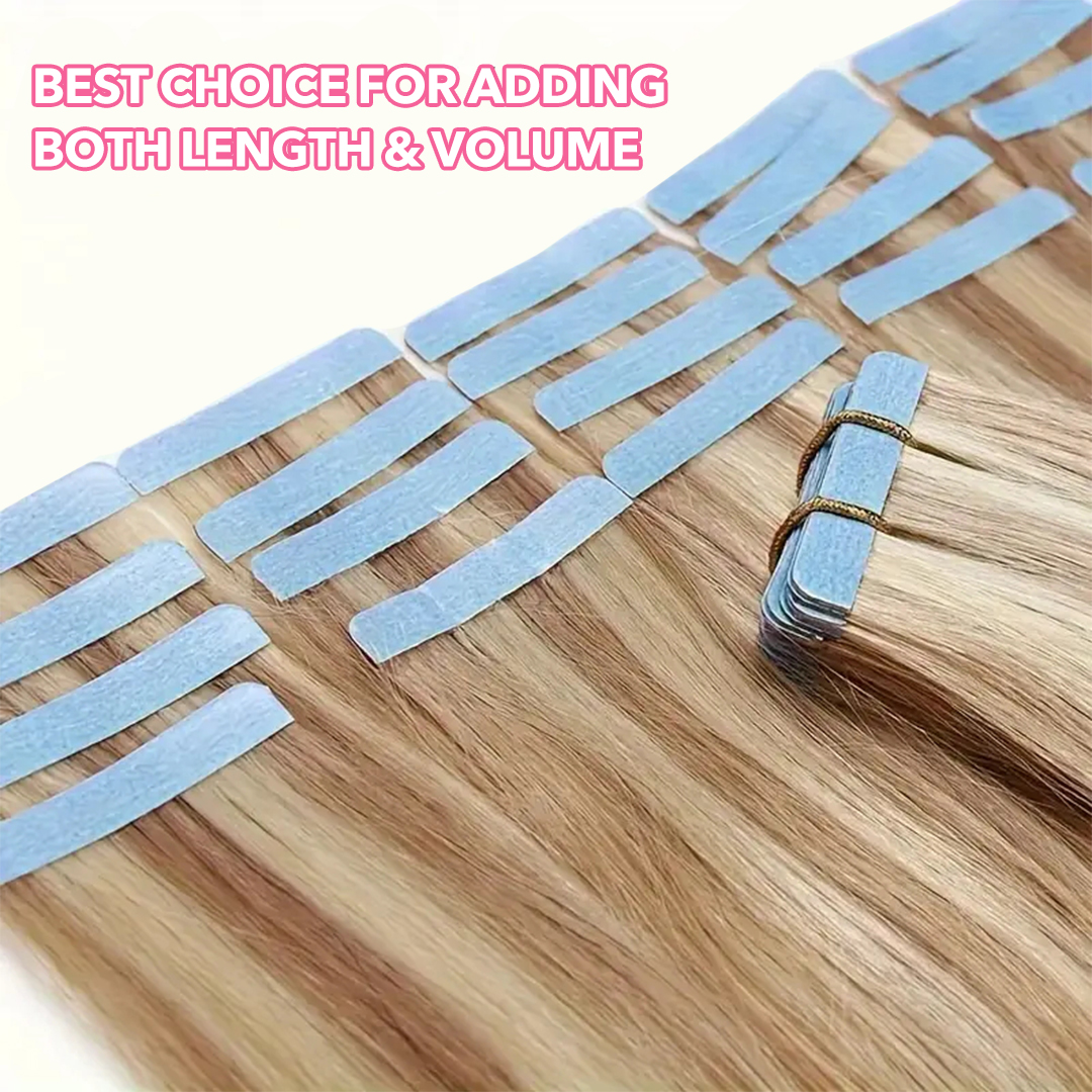 Luxefame Tape In Hair Extensions 14"-24" Real Human Hair Straight Remy Skin Weft Adhesive Tape for Women